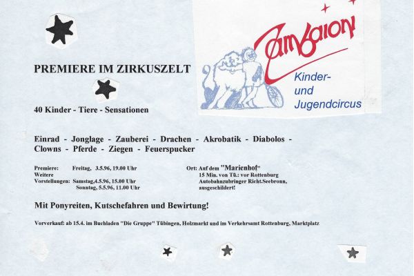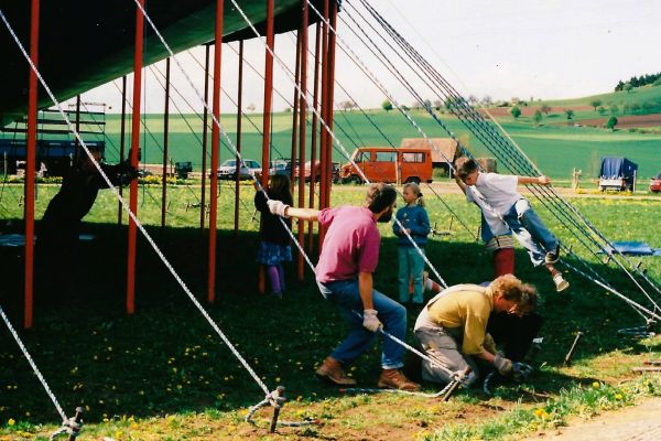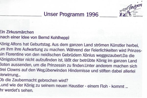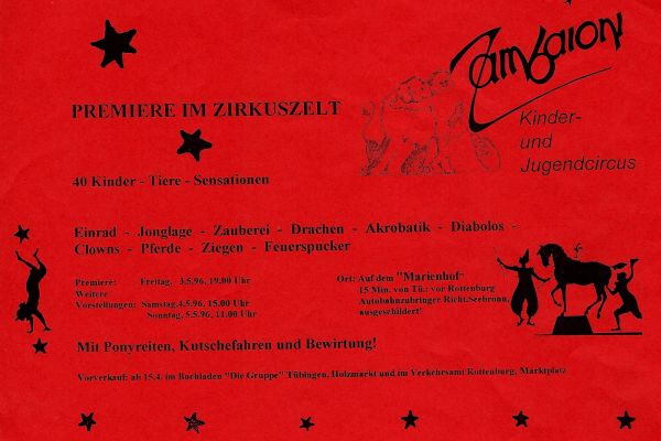 Viele erste Male: 1996 gibt es das erste Programm mit Titel und – angemietetem – Zelt. Es kommen 2000 Besucher*innen, alle Vorstellungen sind ausverkauft!