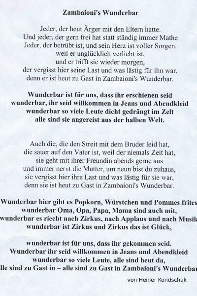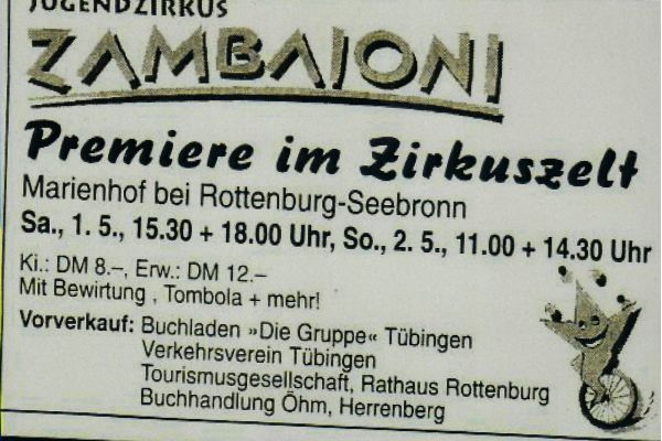(aus: "Zu Gast in Zambaionis Wunder-Bar. Im Kinder- und Jugendzirkus fürs Leben lernen" von Andrea Mecke, in: Tübinger Blätter 1999/2000, S. 35)