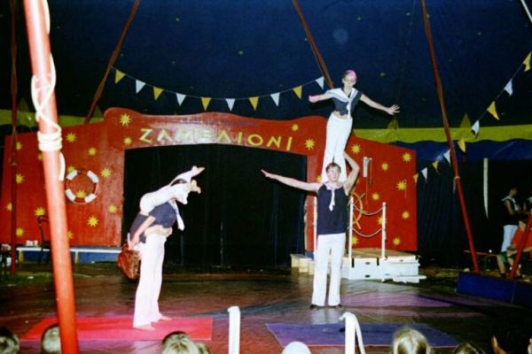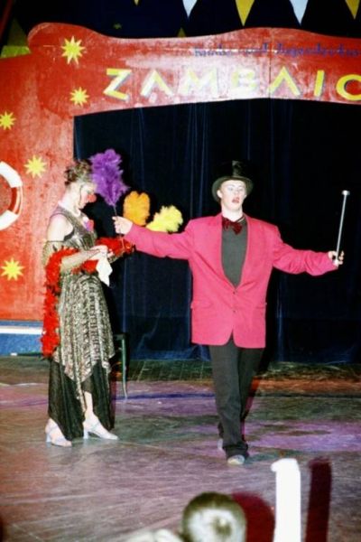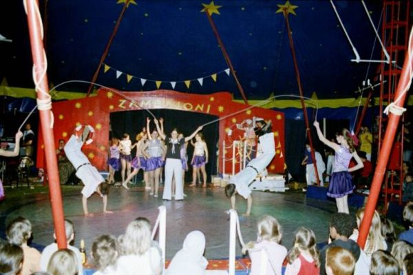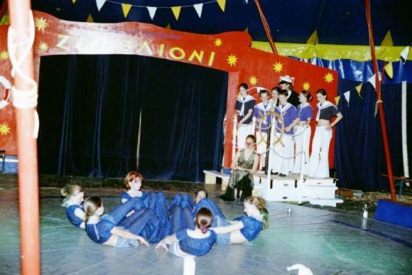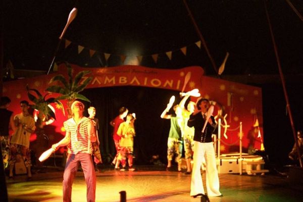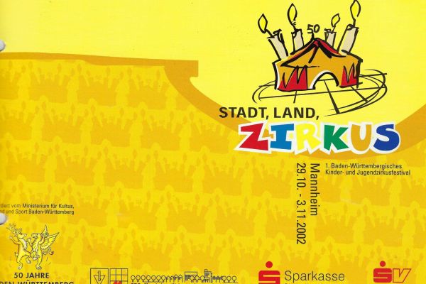 Ehemalige Artist*innen machen erstmals Licht- und Tontechnik und spielen im Orchester. Vom 9.10. bis 3.11.2002 findet in Mannheim das 1. Baden-Württembergische Kinder- und Jugendzirkusfestival "Stadt, Land, Zirkus" statt – der Zambaioni ist natürlich mit dabei!