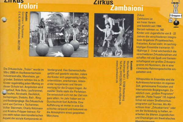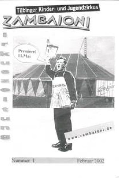 Am 11.05.2002 erscheint die erste Zirkuszeitung: Hier berichten Trainer*innen, Artist*innen, Eltern und andere Menschen aus dem Zambaioni-Umfeld darüber, wie eine Zirkusproduktion entsteht, über Jonglier-Conventions und andere Hintergründe des Zirkuslebens.
