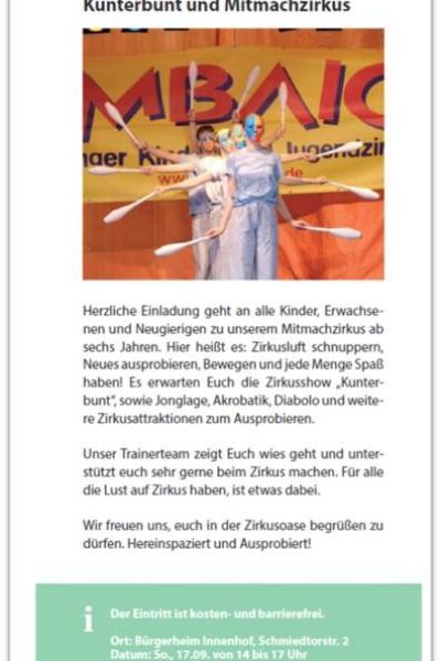 Zirkusshow "Kunterbunt" und Mitmachzirkus "Zirkus-Oase" in Tübingen