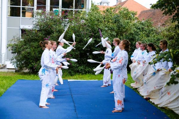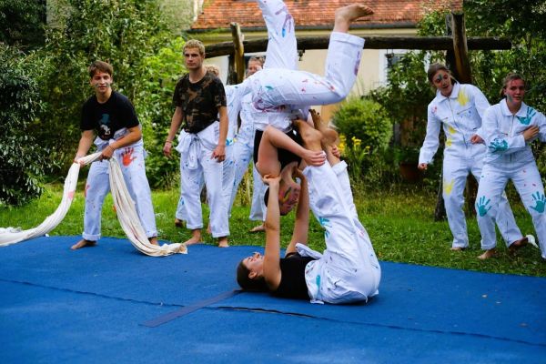 Gegen Ende ihrer Zirkuslaufbahn im Zirkus Zambaioni können die jugendlichen Zambaioni-Artist*innen ein eigenes Zirkusprojekt auf die Beine stellen. Dieses Jahr gehen erstmals 14 Jugendliche zwischen 16 und 18 Jahren als Wanderzirkus mit ihrem äußerst lebendigen und farbenfrohen Programm "Kunterbunt" auf Tournee – wir wünschen eine gute Reise! Zum Glück treten die jungen Artist*innen mit ihrer Zirkusshow aber auch noch in Tübingen auf.