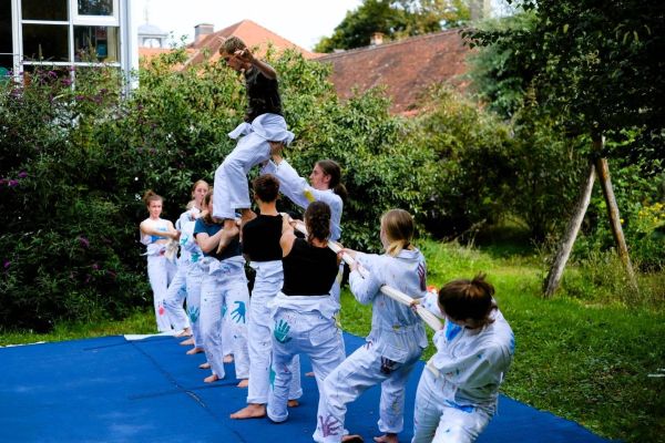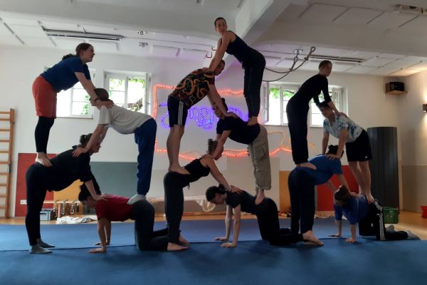 Wir als Gruppe haben uns dafür entschieden, anstatt einer klassischen Show mit Story und rotem Faden eine bunt gemischte Nummerncollage zu entwickeln. Dazu gehören Disziplinen wie (Partner-)Akrobatik, Poi, Ropeskipping und Jonglage. In verschiedenen Workshops haben wir an den einzelnen Disziplinen intensiv gearbeitet, um ab September eine kunterbunte Show präsentieren zu können. Wir freuen uns darauf, mit unserer Show viele Menschen begeistern zu können und als Gruppe eine coole Zeit zu haben!