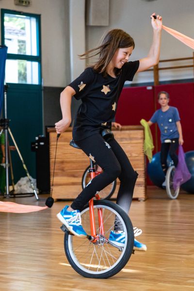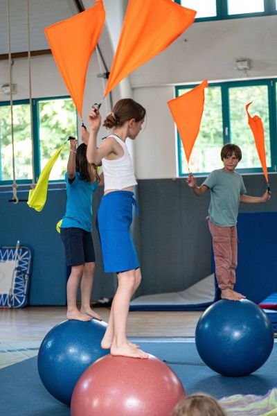 Zusammen mit anderen Kindern und unter Anleitung erfahrener Trainer*innen könnt Ihr Zirkusluft schnuppern, neue Freundschaften schließen und dabei jede neue Menge Tricks lernen in den Bereichen Trapez, Tuch, Akrobatik, Laufkugel, Jonglieren, Seilspringen, Trampolin, Diabolo oder Clownerie. Hier könnt Ihr Eure Fähigkeiten erweitern und vertiefen. Zum Ende des Zirkusjahres werdet Ihr mit anderen eine Zirkusnummer erarbeiten, die in einem kleinen Programm Familie und Freund*innen präsentiert wird.