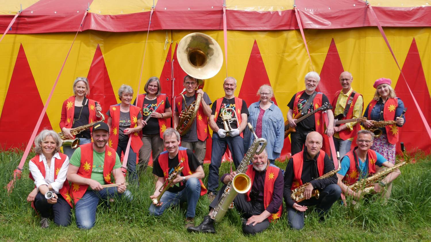 Von Anfang an wurden die Kunststücke der Zambaioni-Artist*innen von Live-Musik begleitet. Heute zählt das Orchester ca. 17 zirkusmusikbegeisterte Eltern und Ehrenamtliche und ist aus dem Zelt nicht mehr wegzudenken.